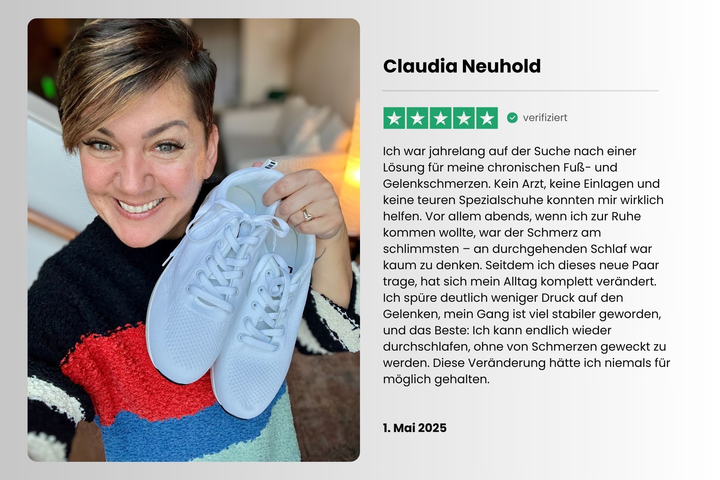 Zum Glück zeigen neue Studien, dass eine neue Art von Schuhwerk mehr kann als nur gut aussehen – sie hilft dabei, den ganzen Körper neu auszurichten. OrthoCare, entwickelt von den Gesundheitsexperten bei BergXperten, bietet ergonomische Unterstützung und Schmerzlinderung in einem minimalistischen, flexiblen Design. Indem OrthoCare den Füßen erlaubt, sich natürlich zu bewegen, verbessert sich Ihre Körperhaltung – was wiederum Beschwerden reduziert und einen tieferen, erholsameren Schlaf fördert.
